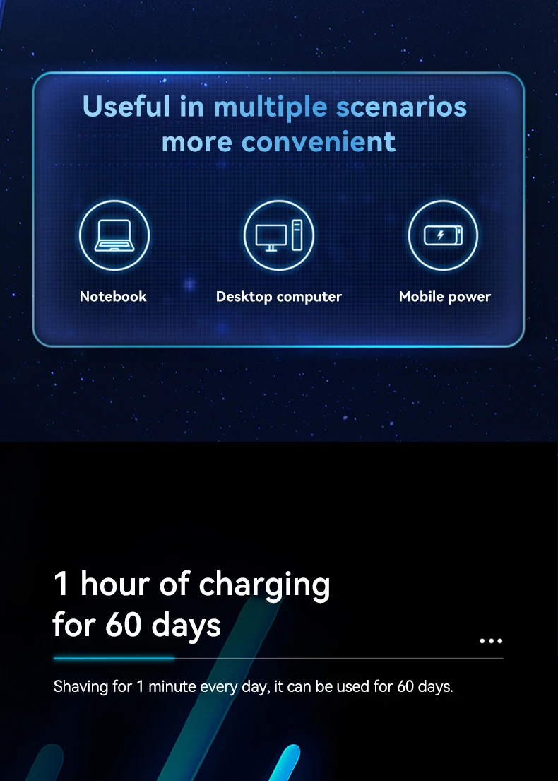 🔋 Rechargeable: Equipped with a rechargeable battery, RazorFlex™ is eco-friendly and eliminates the hassle of frequent battery replacements.