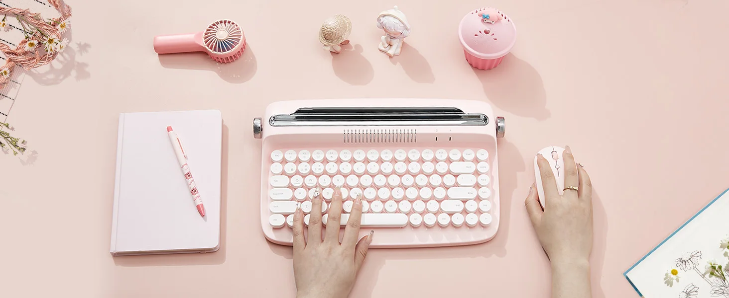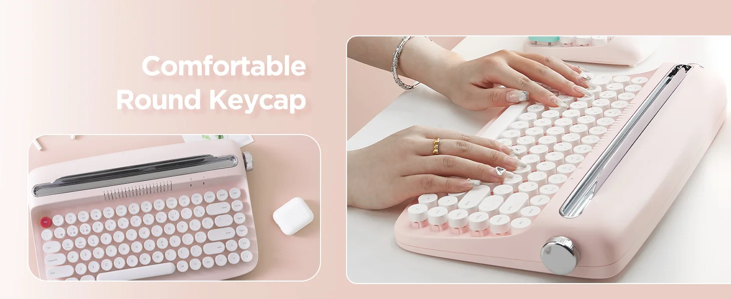 💖 Vintage Aesthetic: The RetroType™ keyboard blends vintage charm with modern functionality, boasting a compact layout, retro typewriter style, and adorable round keycaps. It's the epitome of retro cuteness for your workspace! 📠🌸