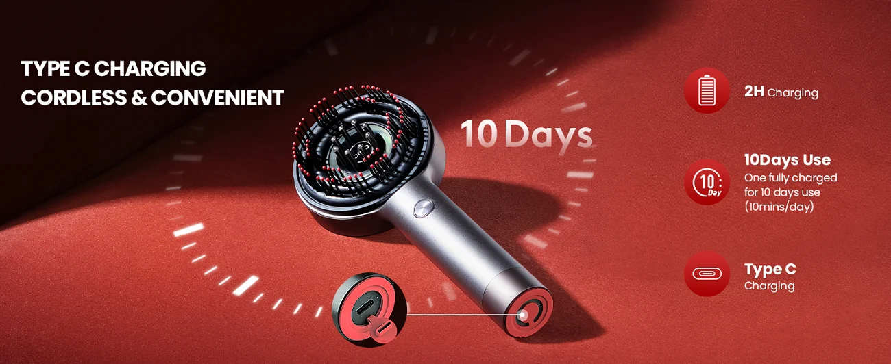 🔋 Battery Powered: No cords, no hassle! ScalpSoother™ operates on a rechargeable battery, offering you convenience and flexibility with every use.
