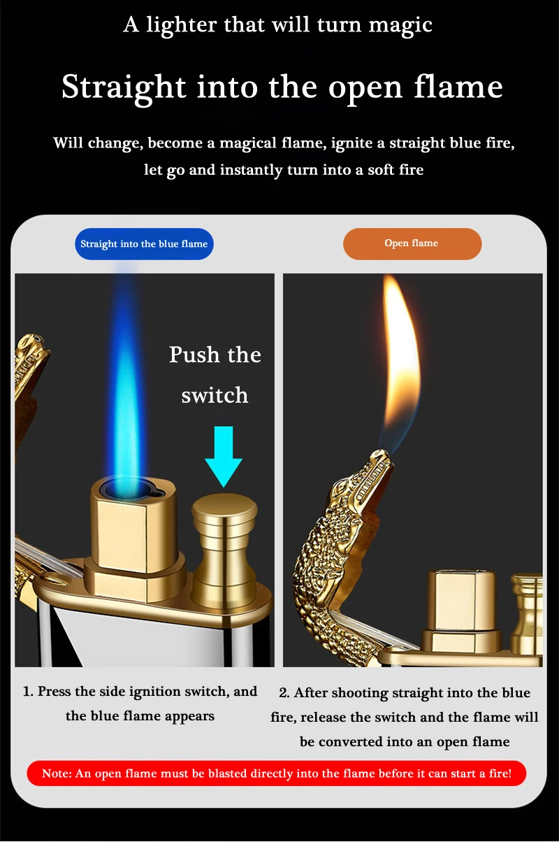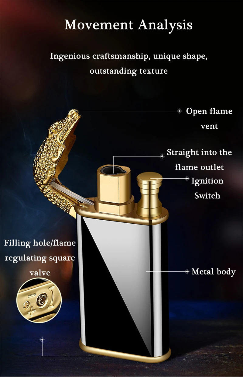 This limited series lighter with a crocodile head design ensures that you probably won't come across this lighter anywhere else. Chances are that people around you have never seen anything like it before. There are even two styles of flame, blue & shaped flame, and a normal match like flame.