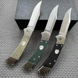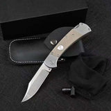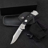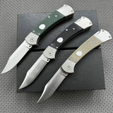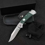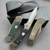 The blade of the 110 Auto Elite Knife is made of high-quality 420HC stainless steel.420HC is knife standard blade material because it approaches the wear resistance of high carbon alloys while delivering the corrosion resistance of chromium stainless steels. Add knife exclusive heat-treat process and you have a very user-friendly combination of superior corrosion resistance with excellent strength for wear resistance and durability. You also have a blade that is easy to resharpen. For best performance Knife hardens to a Rockwell hardness of 58-60HRC.