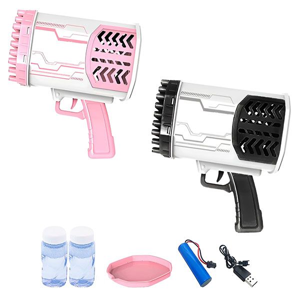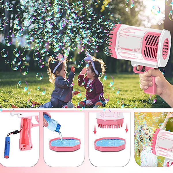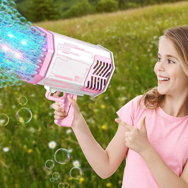 The bubble hole can spray 7000+ colorful bubbles flying in the sky every minute.When you pull the trigger, bubbles will be ejected, the muzzle lights.