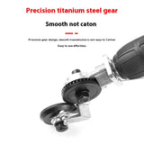 Precision steel gearing and a rotating round knife produce clean, flat, burr-free edges.
