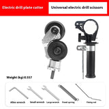 Turn any handheld drill into a fast, safe metal-sheet cutter. This compact attachment delivers smooth, precise cuts in iron and other sheet metals—without exposed saw blades.