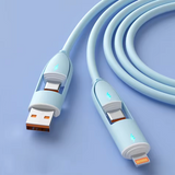 No more tangled cables or overloaded outlets! The The MasterCable ™ 4-in-1 Cable combines ultra-fast charging power and high-speed data transfer in a single, smart design. With up to 240W of power, it's perfect for charging everything from smartphones to high-performance notebooks. Compatible with iPhone, MacBook, iPad, Samsung and more, you get it all in one product.