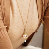 This exquisite piece combines a lustrous freshwater pearl with a captivating gemstone.